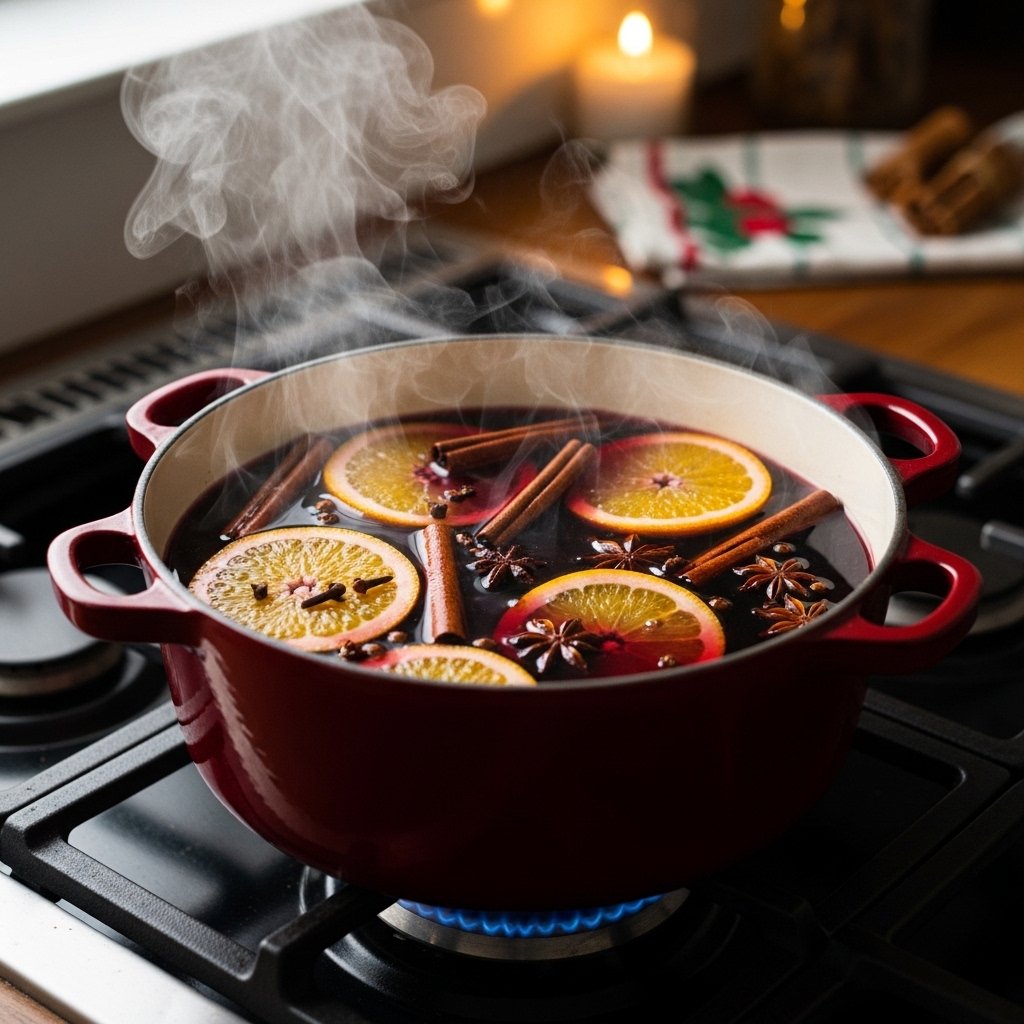 Scent is processed by the brain’s emotional center, which means the fragrance of your home directly influences how guests feel when they walk through the door and throughout the entire evening. Be intentional about creating a beautiful, layered scent experience. Simmer a pot of water with orange slices, cinnamon sticks, cloves, and star anise on your stove for a naturally fragrant atmosphere that fills the whole house. Light scented candles in complementary fragrances cedarwood, balsam, vanilla, and spiced citrus all feel deeply Christmas. Avoid conflicting scents from too many different candles or diffusers. A home that smells like Christmas is a home that immediately feels like Christmas and that emotional response sets the tone for the entire evening.