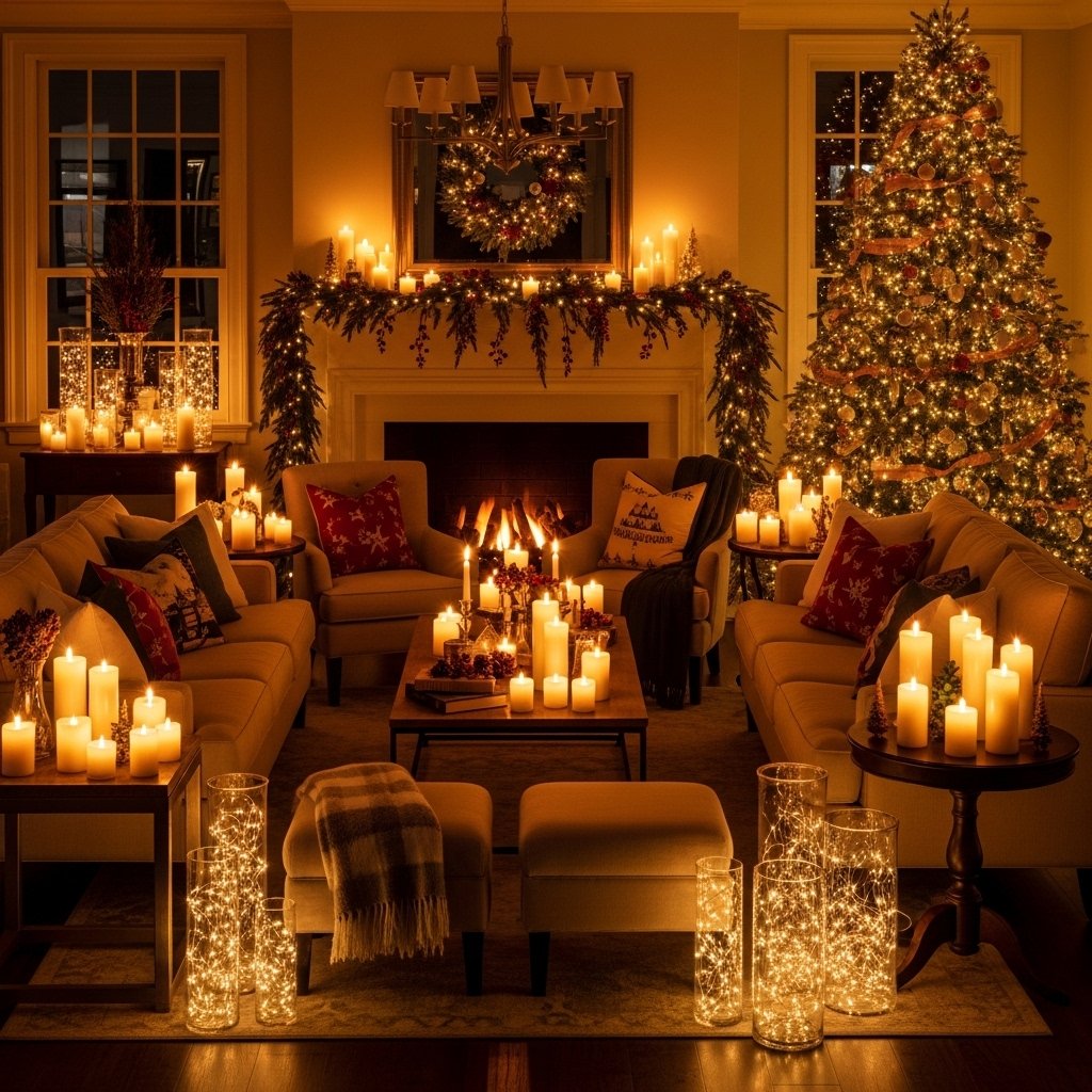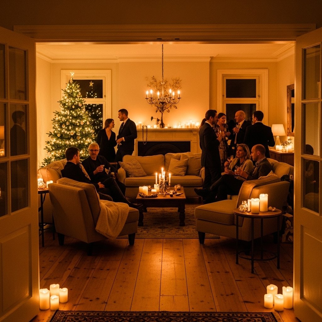 Lighting is the single most transformative element of any party, and strategic holiday lighting can make your home look and feel like a completely different space. Turn off harsh overhead lighting entirely and rely instead on the warm glow of table lamps, floor lamps, candles, and string lights. Place battery-operated fairy lights in glass vases, mason jars, and lanterns throughout the party space. Dim all adjustable lights to their lowest warm setting. Light candles on every surface where it’s safe to do so mantles, tables, windowsills, and shelves. The resulting atmosphere is warm, flattering, and deeply romantic in the best possible sense the kind of lighting that makes everyone look beautiful and feel completely at ease.