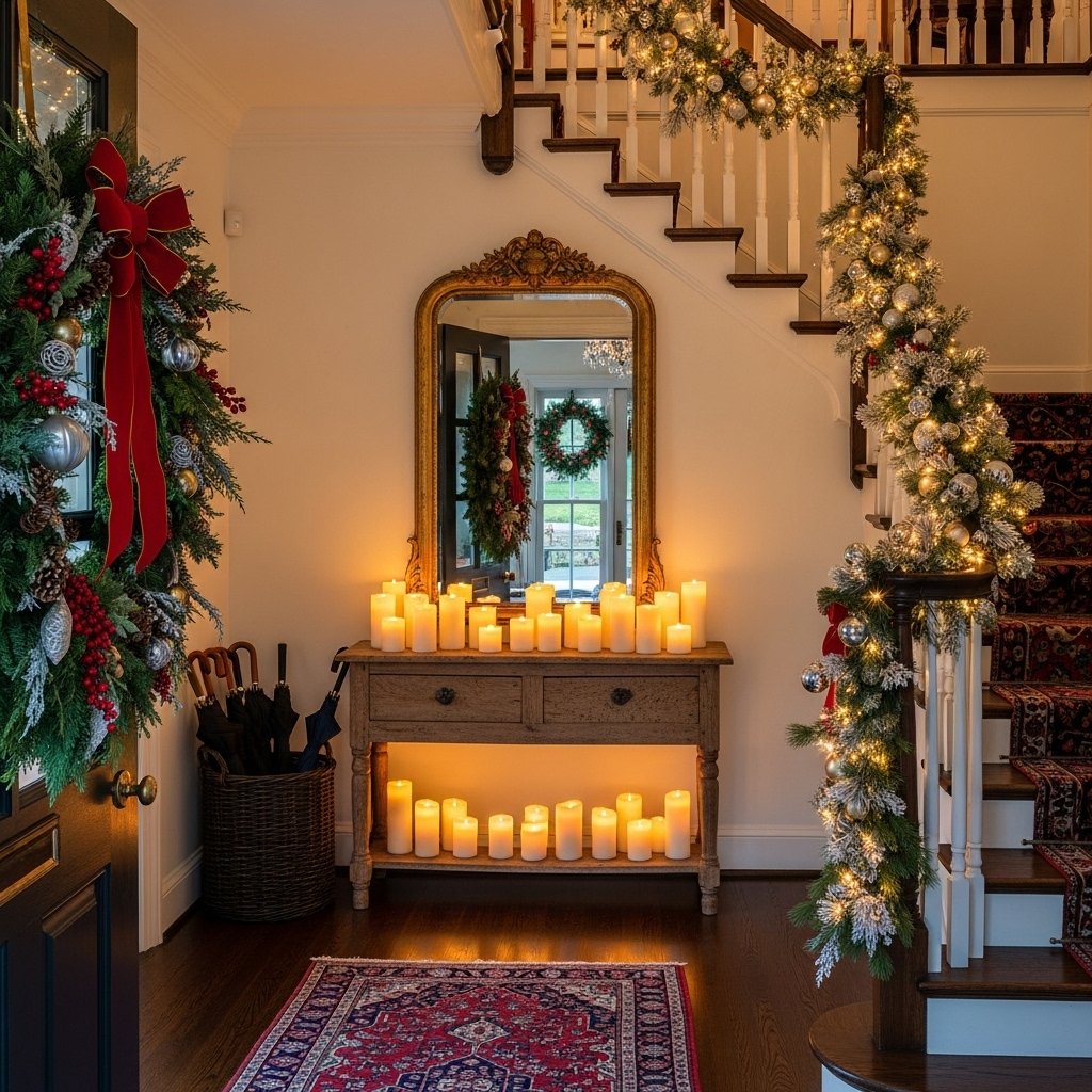 The moment guests arrive at your front door sets the emotional tone for their entire evening, and a beautifully decorated entrance creates an immediate sense of magic and anticipation. Start with a lush wreath on the door full, fragrant, and adorned with a beautiful ribbon bow. Flank the door with potted evergreens, lanterns with pillar candles, or garland-wrapped pillars. Line the pathway with paper bag luminaries or solar-powered pathway lights. If weather permits, a pot of mulled wine or hot cider at the entrance with a self-serve station creates an instant welcome moment. This first impression whispers to every arriving guest that tonight is going to be something genuinely special.