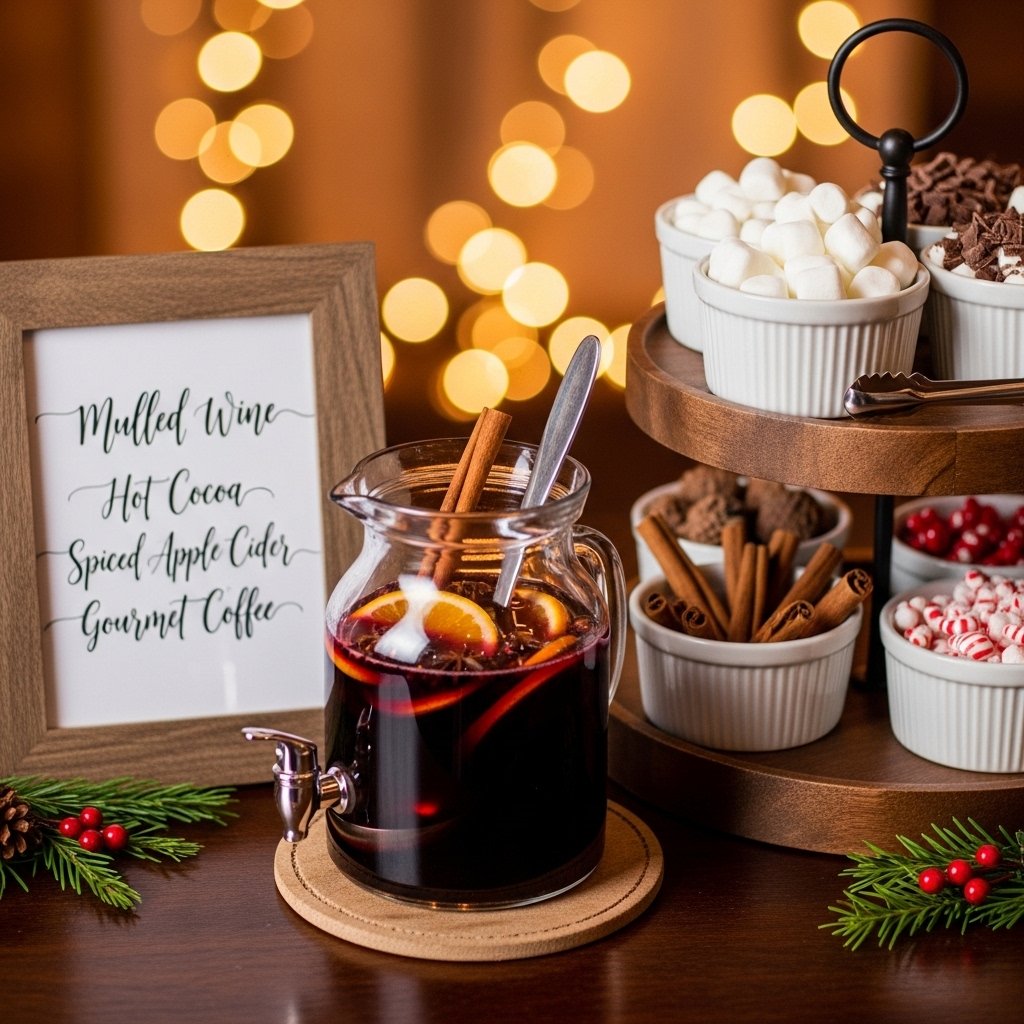 A self-serve hot drinks bar is one of the most universally loved party features, and during the Christmas season it feels particularly magical and welcoming. Set up a dedicated station with a large dispenser of mulled wine or spiced cider keeping warm, a coffee and tea station with a beautiful electric kettle, and a hot cocoa setup complete with toppings mini marshmallows, whipped cream, cinnamon sticks, chocolate shavings, and crushed peppermint. Display everything on a beautiful tray or tiered stand with a handwritten menu card. This station becomes a natural gathering point where guests meet, warm their hands, and fall into the kinds of easy, relaxed conversations that make parties truly memorable and deeply enjoyable for everyone present.